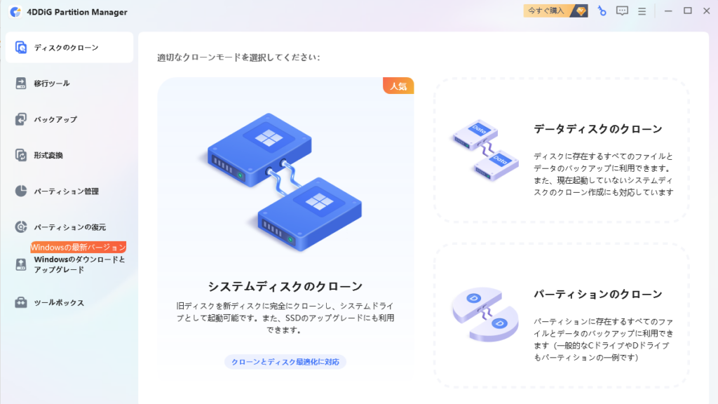 最新のエディションや機能構成は、必ず4DDiG Partition Managerの製品ページで確認してからインストールするようにしてください。