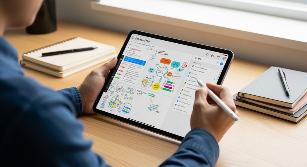 ビジネスシーンにおいても、iPadは情報整理やアイデア創出の強力なパートナーとなります。
