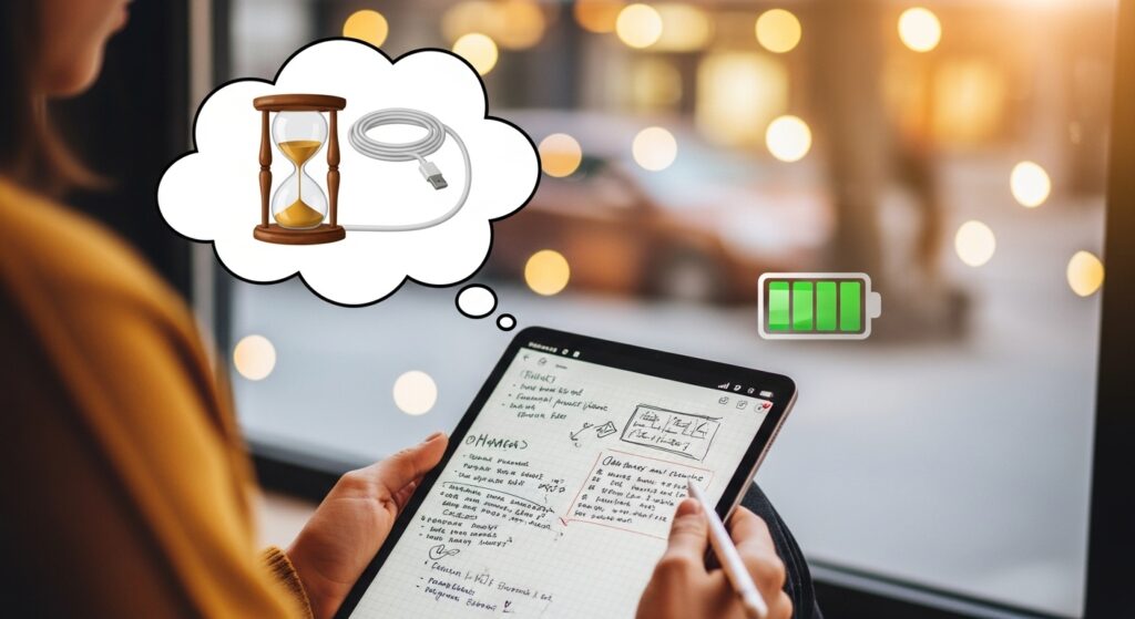 iPadをノートとして本格的に活用する上で、バッテリーの持続時間は非常に重要な要素です。